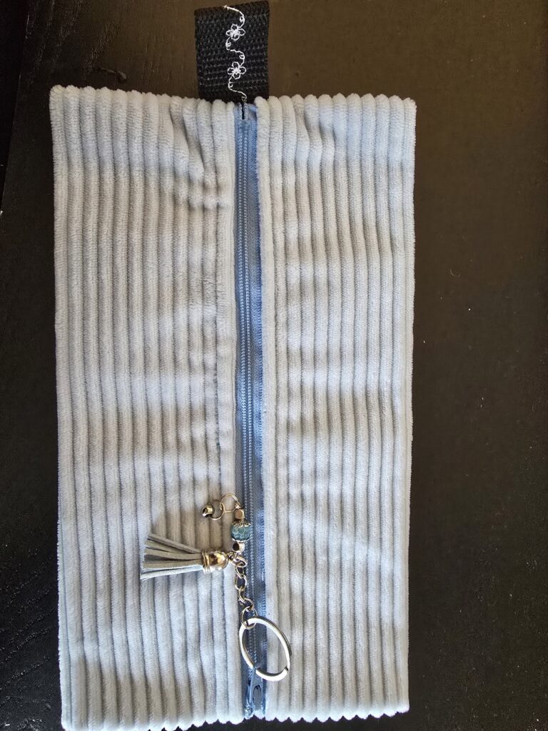 Hand gemaakte etui, can een zachte lichtblauwe ribstof en aan de binnenkant een verrassende stitch voering Ideaal voor school maar ook thuis gebruik. Met zijn grote afmeting van 25 bij 15 kan je er alles in kwijt.